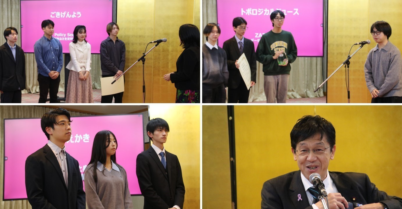 部門賞の選考が行われている間、ファイナリストの各チームと松本行政改革担当大臣との懇談が行われました。表彰式:選考委員からの講評